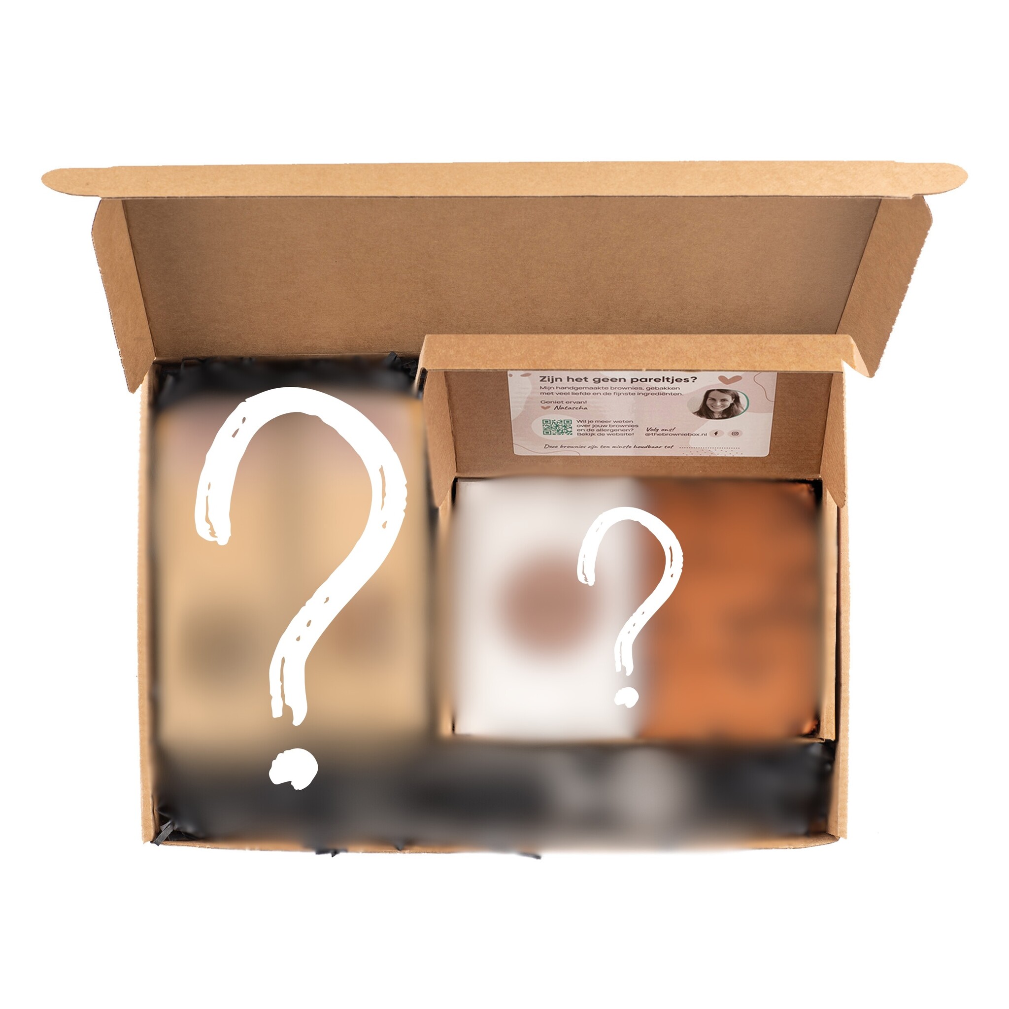 Wees er snel bij! Onze Mystery Boxen zijn beperkt beschikbaar. Er zijn slechts 10 boxen per week beschikbaar, dus mis deze kans niet om jezelf of iemand anders te verrassen met onze Mystery Box.