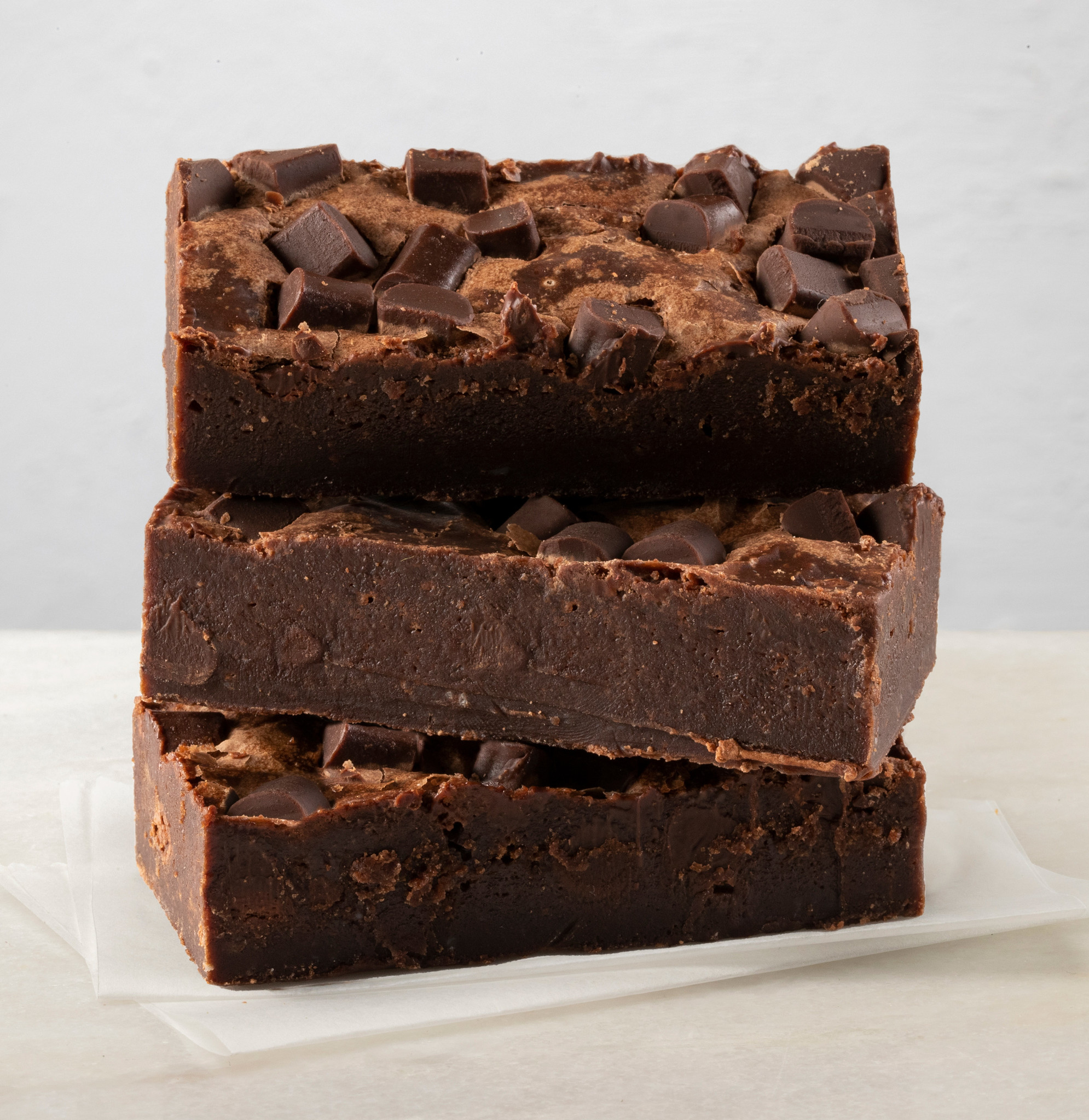 Eén hap brengt je langs een krokante chocoladekorst, stevige brownie textuur langs de randen, smeuïge chocolade in het midden en dan… wat is dat? Ongesmolten stukjes duurzame pure Callebaut chocolade. Are you kidding me?
