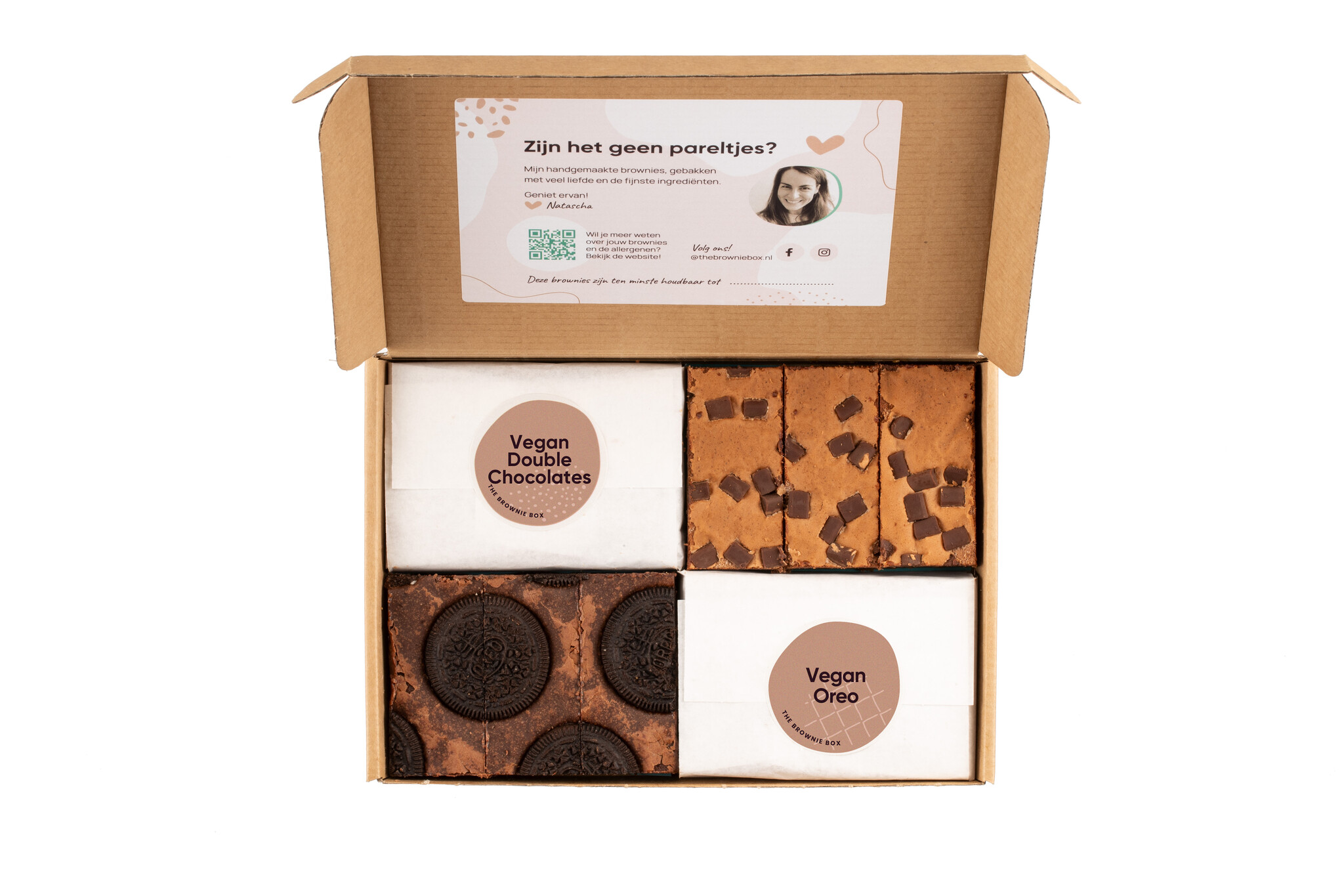 Daarnaast zijn de brownies gemaakt van de volgende ingrediënten: